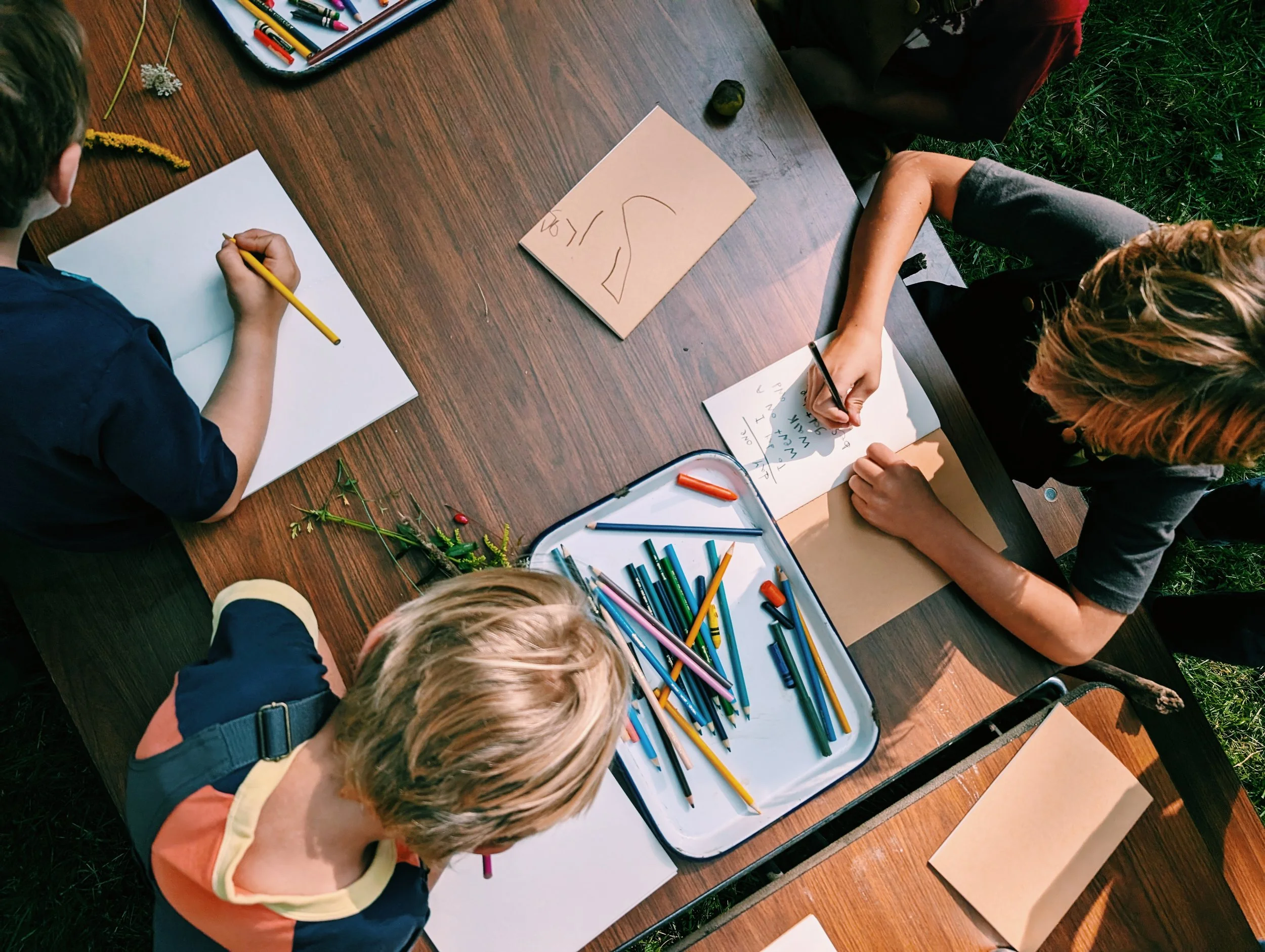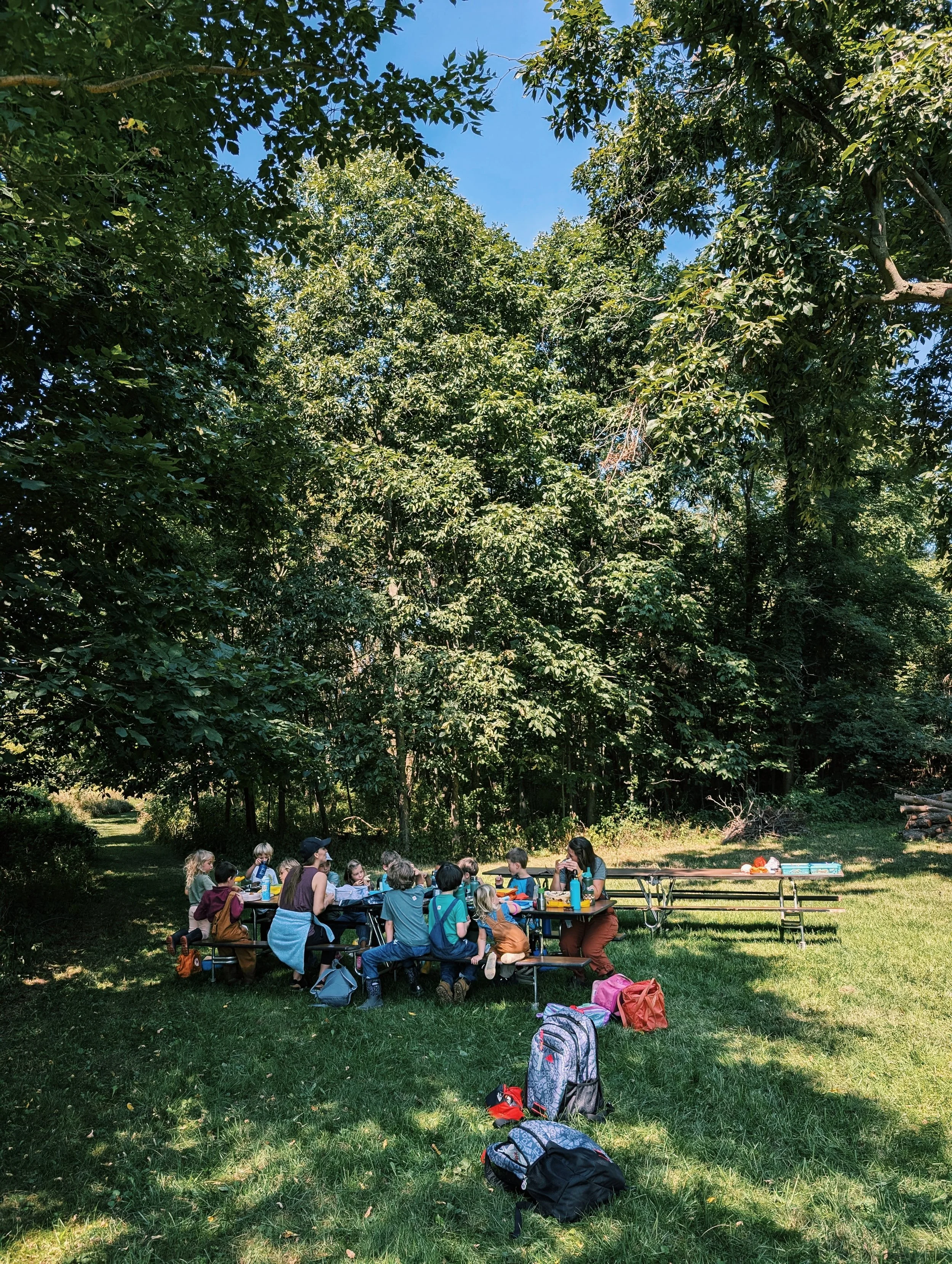 We lunch together - outside of course! We believe deeply in resourcefulness and caring for the earth, so lunches are waste-free.